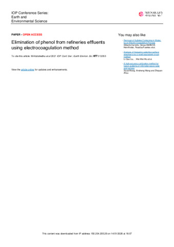 Elimination of phenol from refineries effluents using electrocoagulation method.