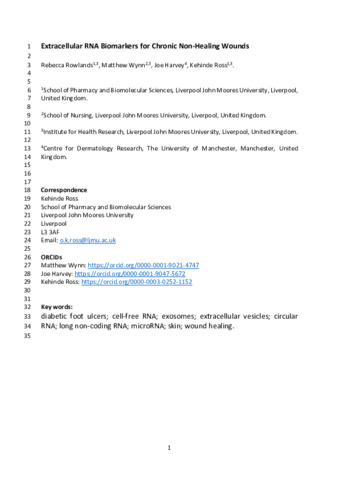 Extracellular RNA Biomarkers for Chronic Non Healing Wounds.pdf - Accepted Version Available under License Creative Commons Attribution. Download (609kB) | Preview |