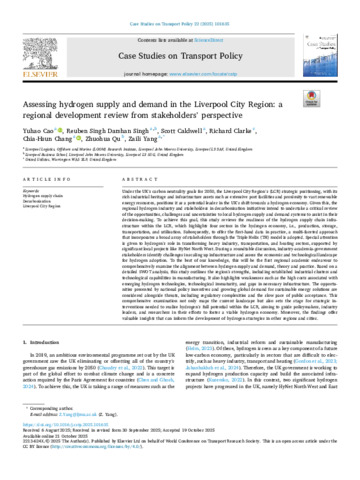 Assessing hydrogen supply and demand in the Liverpool City Region: a regional development review from stakeholders’ perspective.