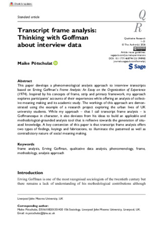 pötschulat-2026-transcript-frame-analysis-thinking-with-goffman-about-interview-data.pdf - Published Version Available under License Creative Commons Attribution. Download (471kB) | Preview |