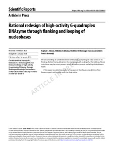Rational redesign of high-activity G-quadruplex DNAzyme through flanking and looping of nucleobases..pdf - Published Version Available under License Creative Commons Attribution Non-commercial No Derivatives. Download (17MB) | Preview |