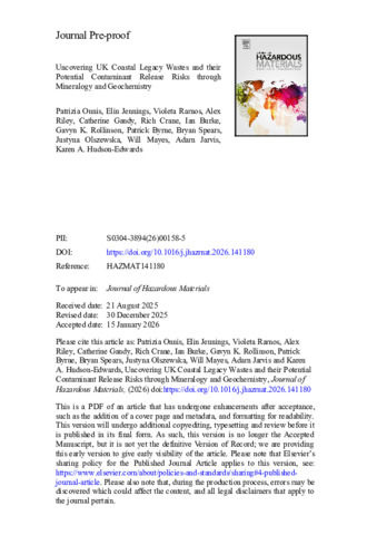 Uncovering UK Coastal Legacy Wastes and their Potential Contaminant Release Risks through Mineralogy and Geochemistry.