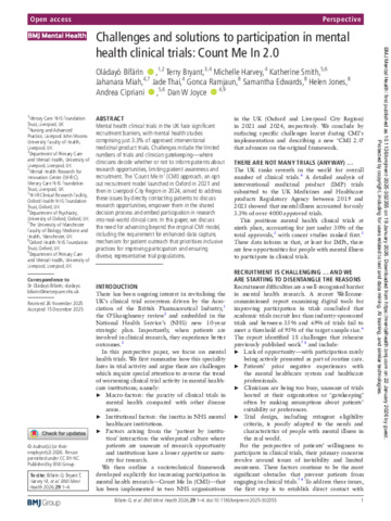 Challenges and solutions to participation in mental health clinical trials- Count Me In 2.0.pdf - Published Version Available under License Creative Commons Attribution Non-commercial. Download (246kB) | Preview |