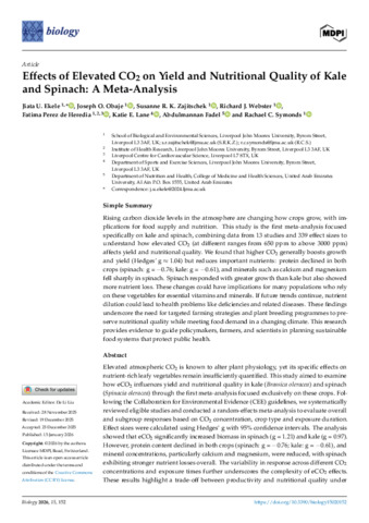 Effects of Elevated CO2 on Yield and Nutritional Quality of Kale and Spinach: A Meta-Analysis.