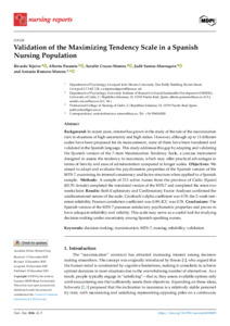 Validation of the Maximizing Tendency Scale in a Spanish Nursing Population.pdf - Published Version Available under License Creative Commons Attribution. Download (677kB) | Preview |