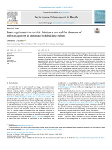 From supplements to steroids- Substance use and the discourse of self-management in dominant bodybuilding culture.pdf - Published Version Available under License Creative Commons Attribution. Download (494kB) | Preview |