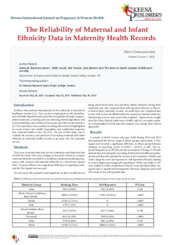 The Reliability of Maternal and Infant Ethnicity Data in Maternity Health Records.