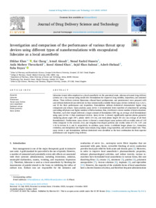 Investigation and comparison of the performance of various throat spray devices using different types of nanoformulations with encapsulated lidocaine as a local anaesthetic.