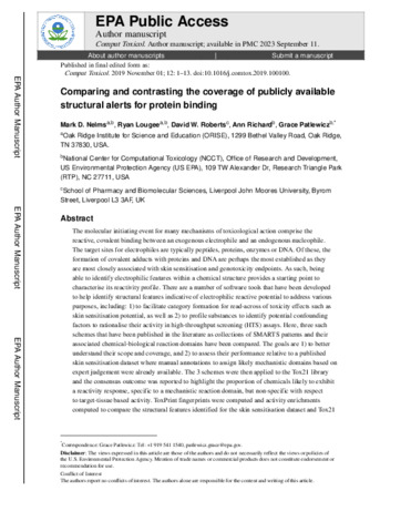 Comparing and contrasting the coverage of publicly available structural alerts for protein binding.