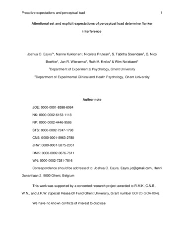Attentional Set and Explicit Expectations of Perceptual Load Determine Flanker Interference.