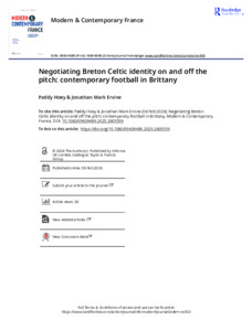 Negotiating Breton Celtic identity on and off the pitch contemporary football in Brittany.pdf - Published Version Available under License Creative Commons Attribution. Download (695kB) | Preview |