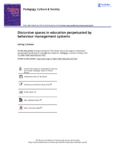 Discursive spaces in education perpetuated by behaviour management systems.pdf - Published Version Available under License Creative Commons Attribution. Download (1MB) | Preview |
