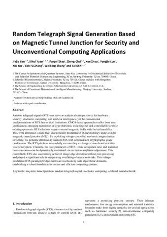 Random telegraph signal generation based on magnetic tunnel junction for security and unconventional computing applications.pdf - Accepted Version Available under License Creative Commons Attribution Non-commercial No Derivatives. Download (2MB) | Preview |
