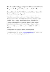 How the Gamified Pedagogy Complements Entrepreneurial Education Programme for Marginalised Communities A Case from Malaysia.pdf - Accepted Version Download (379kB) | Preview |