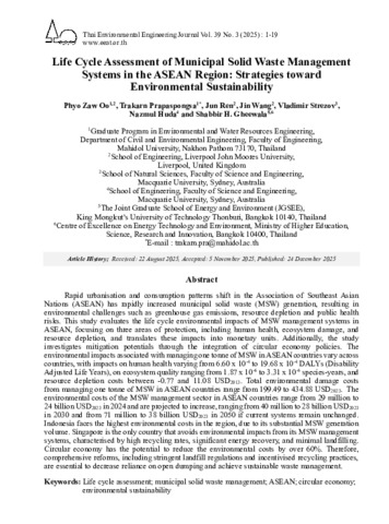 3. Life Cycle Assessment of Municipal Solid Waste Management Systems in the ASEAN Region_Strategies toward Environmental Sustainability (2025).pdf - Published Version Download (789kB) | Preview |