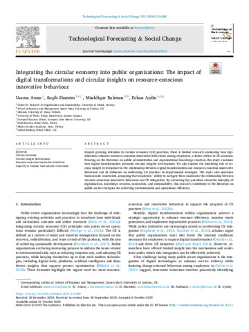 Integrating the circular economy into public organisations: The impact of digital transformations and circular insights on resource-conscious innovative behaviour.