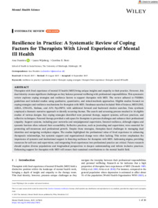 Resilience in Practice: A Systematic Review of Coping Factors for Therapists With Lived Experience of Mental Ill Health.