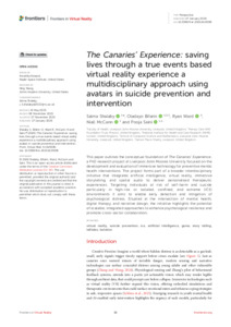 The Canaries’ Experience: saving lives through a true events based virtual reality experience a multidisciplinary approach using avatars in suicide prevention and intervention.