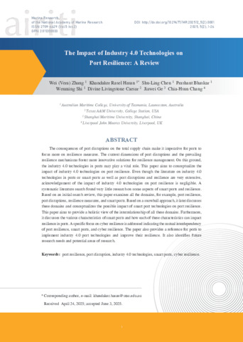 The Impact of Industry 4.0 Technologies on Port Resilience A Review.pdf - Published Version Available under License Creative Commons Attribution Non-commercial No Derivatives. Download (6MB) | Preview |