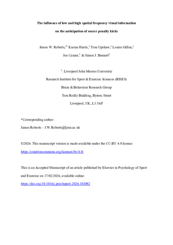 The influence of low and high spatial frequency visual information on the anticipation of soccer penalty kicks. Accepted Version.pdf - Accepted Version Available under License Creative Commons Attribution. Download (578kB) | Preview |