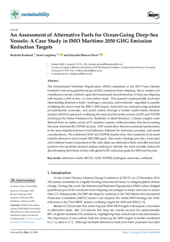 An Assessment of Alternative Fuels for Ocean-Going Deep-Sea Vessels: A Case Study in IMO Maritime 2050 GHG Emission Reduction Targets.