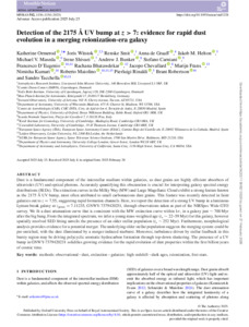 Detection of the 2175 Å UV bump at z > 7: Evidence for rapid dust evolution in a merging reionization-era galaxy.