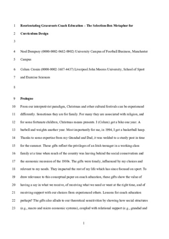 Reorientating grassroots coach education–the selection-box metaphor for curriculum design.pdf - Accepted Version Available under License Creative Commons Attribution Non-commercial No Derivatives. Download (582kB) | Preview |