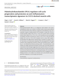 Palmitoylethanolamide (PEA) regulates cell cycle progression and promotes an anti-inflammatory transcriptomic signature in C2C12 skeletal muscle cells.