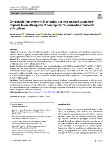 Comparable improvements in selective, but not sustained, attention in response to a multi-ingredient nootropic formulation when compared with caffeine.