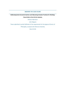 Maguire, J (2026) Breaking the class ceiling: addressing socio-economic barriers and advancing inclusive practices for working-class artists in the UK arts industry. Doctoral thesis, Liverpool John Moores University.