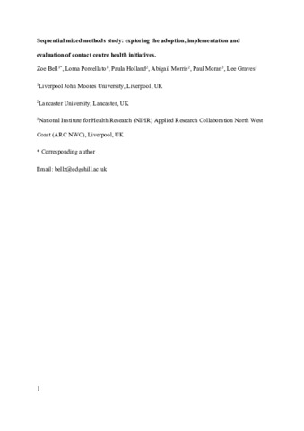 Sequential mixed methods study: exploring the adoption, implementation and evaluation of contact centre health initiatives.