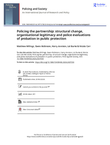 Policing the partnership structural change organisational legitimacy and police evaluations of probation in public protection.pdf - Published Version Available under License Creative Commons Attribution. Download (690kB) | Preview |