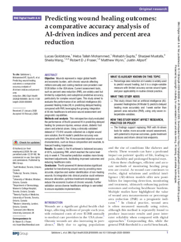Predicting wound healing outcomes a comparative accuracy analysis of AI driven indices and percent area reduction.pdf - Published Version Available under License Creative Commons Attribution Non-commercial. Download (1MB) | Preview |