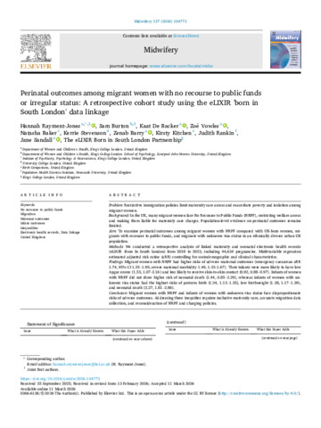 Perinatal Outcomes Among Migrant Women with No Recourse to Public Funds or Irregular Status: A Retrospective Cohort Study Using the eLIXIR 'Born in South London' Data Linkage.