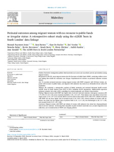 To examine perinatal outcomes among migrant women with NRPF compared with UK-born women, migrants with recourse to public funds, and migrants with unknown visa status in an ethnically diverse urban UK population.