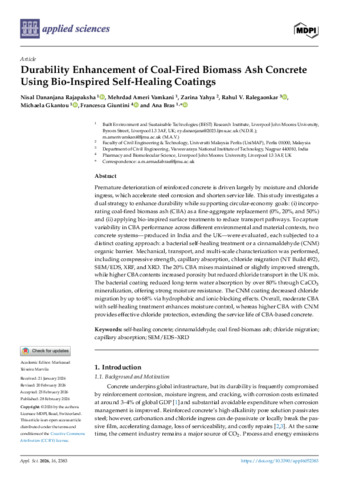 Durability Enhancement of Coal-Fired Biomass Ash Concrete Using Bio-Inspired Self-Healing Coatings.pdf - Published Version Available under License Creative Commons Attribution. Download (30MB) | Preview |