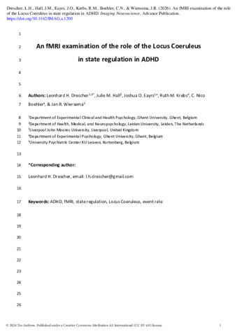 An fMRI examination of the role of the Locus Coeruleus in state regulation in ADHD.