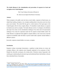 The triadic dilemma in the criminalisation and prosecution of corporate tax fraud and corruption in the United Kingdom.