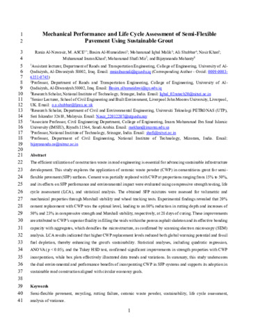 Mechanical Performance and Life Cycle Assessment of Semiflexible Pavement Using Sustainable Grout.