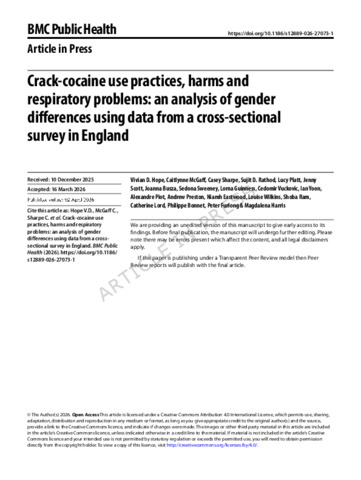 Crack-cocaine use practices- harms and respiratory problems an analysis of gender differences using data from a cross-sectional survey in England.pdf - Accepted Version Available under License Creative Commons Attribution. Download (2MB) | Preview |