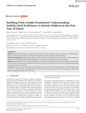 Child - 2026 - Duncan - Building From a Stable Foundation Understanding Stability Skill Proficiency in British Children in.pdf - Published Version Available under License Creative Commons Attribution. Download (203kB) | Preview |