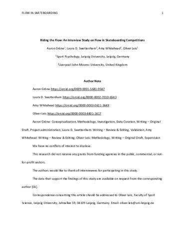 Accepted manuscript Riding the Flow An Interview Study on Flow in Skateboarding Competitions.pdf - Accepted Version Download (492kB) | Preview |