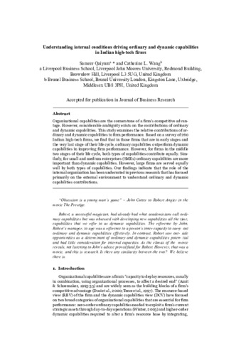 Understanding internal conditions driving ordinary and dynamic capabilities in Indian high-tech firms.