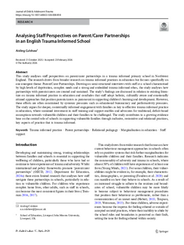 Analysing Staff Perspectives on Parent/Carer Partnerships in an English Trauma Informed School.