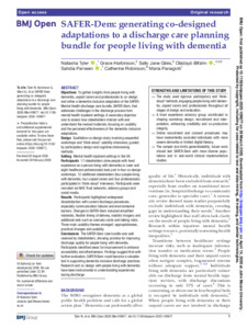 SAFER Dem generating co designed adaptations to a discharge care planning bundle for people living with dementia.pdf - Published Version Available under License Creative Commons Attribution. Download (782kB) | Preview |