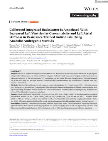 Calibrated Integrated Backscatter Is Associated With Increased Left Ventricular Concentricity and Left Atrial Stiffness in Resistance Trained Individuals Using Anabolic-Androgenic Steroids.