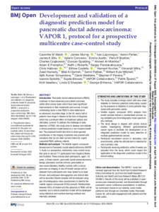 Development and validation of a diagnostic prediction model for pancreatic ductal adenocarcinoma: VAPOR 1, protocol for a prospective multicentre case-control study.