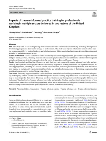 Impacts of trauma-informed practice training for professionals working in multiple sectors delivered in two regions of the United Kingdom.pdf - Published Version Available under License Creative Commons Attribution. Download (791kB) | Preview |