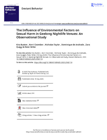 The Influence of Environmental Factors on Sexual Harm in Geelong Nightlife Venues An Observational Study.pdf - Published Version Available under License Creative Commons Attribution. Download (996kB) | Preview |