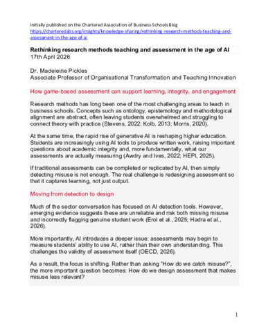 Rethinking research methods teaching and assessment in the age of AI.pdf - Published Version Download (340kB) | Preview |